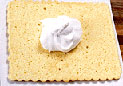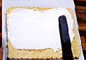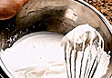 生クリームに粉砂糖を加えて泡立てる。泡立て器でかたまりですくえるくらいの固さ。