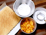 あらかじめペーパータオル等で汁気を充分に切ったミカンを並べる。