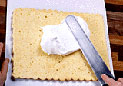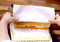すぐにカットしても良いが、冷蔵庫で休ませた方が、生地とクリームがなじみカットしやすくなる。