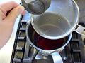 好みの色になれば、すぐに火を止め、飛び跳ねないように、ざる越しに水を加える。