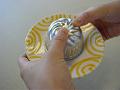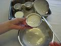冷え固まったパンナ・コッタを型ごと熱い湯につけ、表面を少し溶かす。