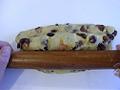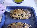何日か置いた後、粉砂糖を振って仕上げ、1cm程の厚さに切る。出来上がり。