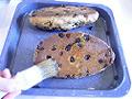 焼き上がったらすぐに、溶かしておいたバターを染み込ませる。