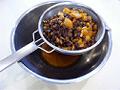 しばらく漬けて置いた物をざるにあけ、水分を切っておく。