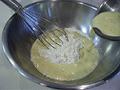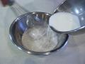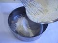 ボウルに中力粉を入れ、5のドライイーストを一気に加え、ダマにならないように混ぜる。