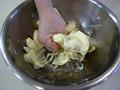全体がバラバラになるように切っていく。切り混ぜ続け、全体がしっとりとまとまってくればよい。