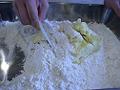 ここでのまとめ具合によって生地の食感が違ってくるので、軽く練った(まとめた)もの、しっかり練ったもの、色々試してみて自分の好みを見付けるとよい。