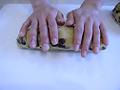 両端は生地が薄くなりやすいので、注意して形を整える。