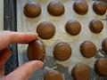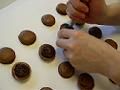絞ったガナッシュの周囲がきれいな円になるよう、絞る量や絞り方に注意する。
