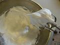 泡立て器ですくってつのが立てば、残りの砂糖を加えて泡立てる。