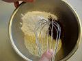 泡立ったら砂糖の1/2を加え、引き続き泡立てる。