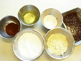 アーモンドパウダーと、ふるったココアパウダー、粉砂糖をボールの中で混ぜ合わせる。