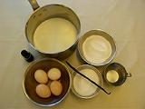 バニラのさやを縦にさき、牛乳と鍋に入れ沸騰直前まで温める。