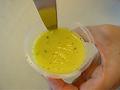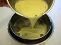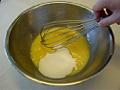 よく溶きほぐした卵に砂糖を加え混ぜ、バラエッセンスを加える。