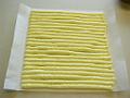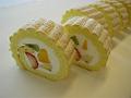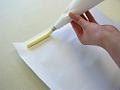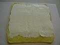 巻き終わりにあたる部分は2cmほどあけておく。さらに巻き終わりにむけてクリームは薄くする。