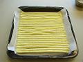 口金を少し浮かせ、自然に生地をたらすようにしながら、口金の太さで紙いっぱいに敷き詰めるように絞る。