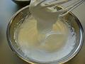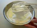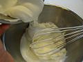 生クリームを泡立て器ですくって固まりで落ちる程度に泡立てる。