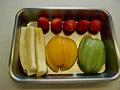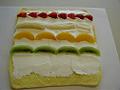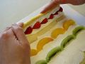 1〜2cmぐらい間をあけて並べる。また、巻いた時にずれないよう、フルーツはクリームに埋め込むようにする。