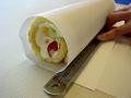 巻き終わりを下にし、紙をかぶせたまま定規でしめ、冷蔵庫で冷やす。