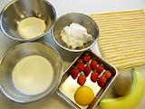 ・いちごはヘタをとり、固く絞った濡れ布巾で汚れを拭きとる。