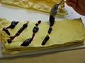 カシスのジャムとキルシュを混ぜ合わせ、クリームの上にのせる。
