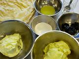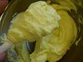 クレーム・パティシエールを350g計り、ヘラで混ぜてなめらかに戻し、柔らかくしたバターと合わせる。