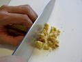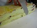 またクリームを少し残しておき、側面に刻んだ生地を接着するために使う。