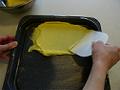 できるだけ厚みをそろえて、生地を薄く塗り広げる。