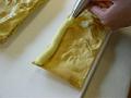 表面を軽く押さえると、生地とクリームがなじんで作業がしやすい。