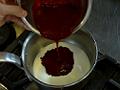 生クリームにフランボワーズのピューレを混ぜる。
