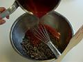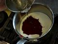 細かく刻んだクーベルテュールの中に、沸騰した3を流し入れる。