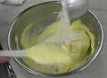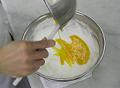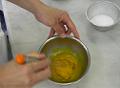 卵黄にバニラエッセンスとすりおろしたレモンの皮を加えて溶きほぐす。