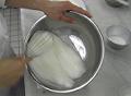 全体がふんわりと泡立ったら砂糖を3回に分けて加えながらその都度泡立てる。