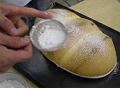 小麦粉をふるい、計量する(分量が少ないのでふるってから計量する)。