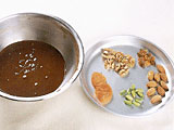 アーモンドとくるみは 軽くローストし、大きければ1/2の大きさに切る。