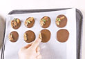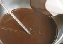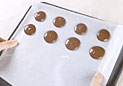 クッキングペーパーを敷いた板(またはオーブンプレート)に、テンパリングしたクーヴェルテュールを、手早く同じ量ずつ絞り出す。