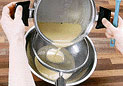 火からおろしたクレーム・アングレーズに、戻したゼラチンを加えて溶かす。