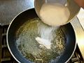 中火でバターを溶かし、グラニュー糖を加えて、キャラメル色になるまで煮詰める。