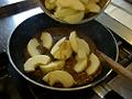 りんごを炒め、キャラメルが全面にからみ、しんなりしたら、バットにあける。
