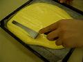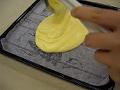 生地が冷めたら、上面にジャムを全体に塗り広げる。