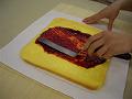 好みで、果肉入りのジャムを使う場合は、裏ごしした方が塗り広げやすいでしょう。 巻き方はビュッシュ・ド・ノエルを参照。