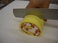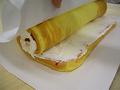 クリームは、泡立て器ですくえる位の固さにしておく。また巻き終わりになるところのクリームの厚さは薄くしておく。