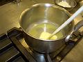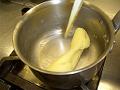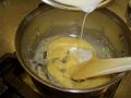 火を消して、温めた牛乳を少しづつ加え混ぜる。