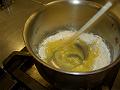 火からはずし、全卵と卵黄を合わせて溶きほぐしたものを3回位に分けて加え混ぜる。(生地のベース)