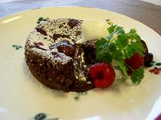 | 中からチョコレートがとろ〜りと出てくるチョコレートケーキ。オーブンへ入れる時間によりとろ〜り具合が変わります。しっかり焼いて食べても、もちろん美味しいです! |