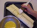 オーブンプレートにのせて、表面全体に溶き卵をはけで塗る。