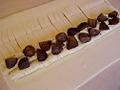 ペーパーでしっかり水分をふいた栗の渋皮煮を並べる。