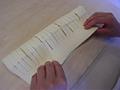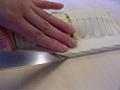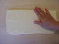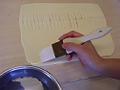 折っていた部分を開いて元に戻し、切れ目以外のところに接着用の水をはけで薄く塗る。