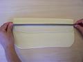 クリームの入っているぎりぎりの部分を指でしっかり押さえて上下の生地をくっつける。それ以外の生地のみの部分も軽く接着し、冷蔵庫に15分(急ぐ場合は冷凍庫に5分)入れて、生地がしっかりかたくなるまで休ませる。