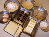 アーモンドパウダーとへーゼルナッツパウダーと小麦粉は合わせてざるでふるっておき、下記のクレーム・ダマンドでアーモンドパウダーを加えるタイミングで入れる。